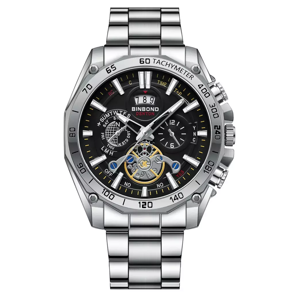 Uma fusão impressionante de engenharia, precisão e design arrojado. Este relógio automático é uma peça para o homem que é fascinado pela mecânica e busca um acessório que seja tão complexo e multifacetado quanto seus interesses.